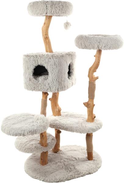 Ez az egyedi plüss kaparófa tökéletes pihenésre és játékra macskádnak. A macska relaxálhat az platformok egyikén vagy az aranyos búvóhelyen a kivehető párnával. A kaparófa 4 fa oszlopból, 3 tartós juta kaparórészből, 3 plüss platformból, 1 párnás búvóhelyből áll. A felső platformhoz egy plüss labda van rögzítve a még több szórakozásért. A kaparófa nemcsak tökéletes menedék macskád számára, hanem gyönyörű kiegészítő bármilyen lakásban. Ezen felül kielégíti a macska természetes kaparó ösztönét, és megvédi bútoraid a karcolásoktól.