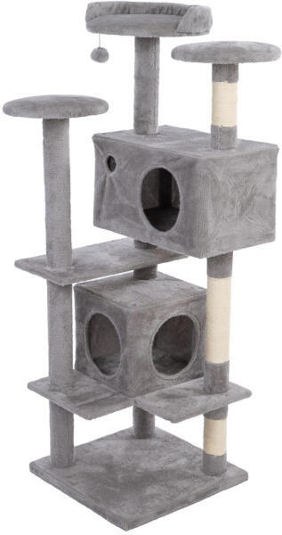 A zooplus. hu kínálatából: A zooplus Basics M/L kaparófa fantasztikus lehetőséget kínál bársonytalpújának mászásra, karomélesítésre és pihenésre. Több szizáloszloppal is ellátott, melyek remek lehetőséget biztosítanak kedvencének karmai optimális ápolására. A 2 kis házikó tökéletes visszavonulási helyet kínál pihenésre és elrejtőzésre. A peremes, kerek, puha fekhely összebújásra, alvásra és szundikálásra invitál, míg a két kilátó platform ideális a terület megfigyelésére. Emellett egy gumiszalagra rögzített, zörgő plüsslabda sok-sok játékélménnyel kecsegtet. A zooplus Basics M/L kaparófa puha plüssel borított, ami különösen puhává és vonzóvá teszi. A zooplus Basics M/L kaparófa jellemzői:Nagy kaparófa macskáknakAkár több bársonytalpúnak: alkalmas több macskás háztartásokba isVisszavonulási helyként: 2 házikó, integrált párnával, felső ház lyukkal a mancsok számáraKerek, kényelmes ágyikó: peremmel, nekidőlésre, rátámaszkodásra, belebújásra, alvásra lustálkodásra2 kilátó platform: ideális területmegfigyelésreSzizál oszlopok: karomápolásraTöbb platform: megkönnyíti a mászástJátékkal: zörgő plüsslabda gumiszalagonHangulatos: puha plüss borításúSzín: szürkeTeljes méret: M 137 x H 48 x Sz48 cmTalapzat: H 48 x Sz 48 cmPlatform: Felül: 2 x Ø 29 cmKözépen: H 48 x Sz 25 cmAlul: H 48 x Sz 48 cmHázikó felül:Teljes méret: H 48 x Sz 31 x M 27 cmBelül: kb. H 47 x Sz 30 x M 26 cmBejárat: Sz 18 x M 20 cmHázikó alul:Teljes méret: H 31 x Sz 31 x M 27 cmBelül: kb. H 30 x Sz 30 x M 26 cm2 bejárat: Sz 18 x M 20 cmPuha ágy:Összesen: kb. Ø 39 x M 8 cmFekvőfelület: kb. Ø 33 cm3 szizáltörzs: Ø 7,5 cm2 x H 25 cm1 x H 45 cm7 plüssoszlop Ø 7,51 x H 45 cm1 x H 35,5 cm1 x H 30 cm2 x H 25 cm2 x H 8,3 cmMegjegyés: csak beltéri használatra.